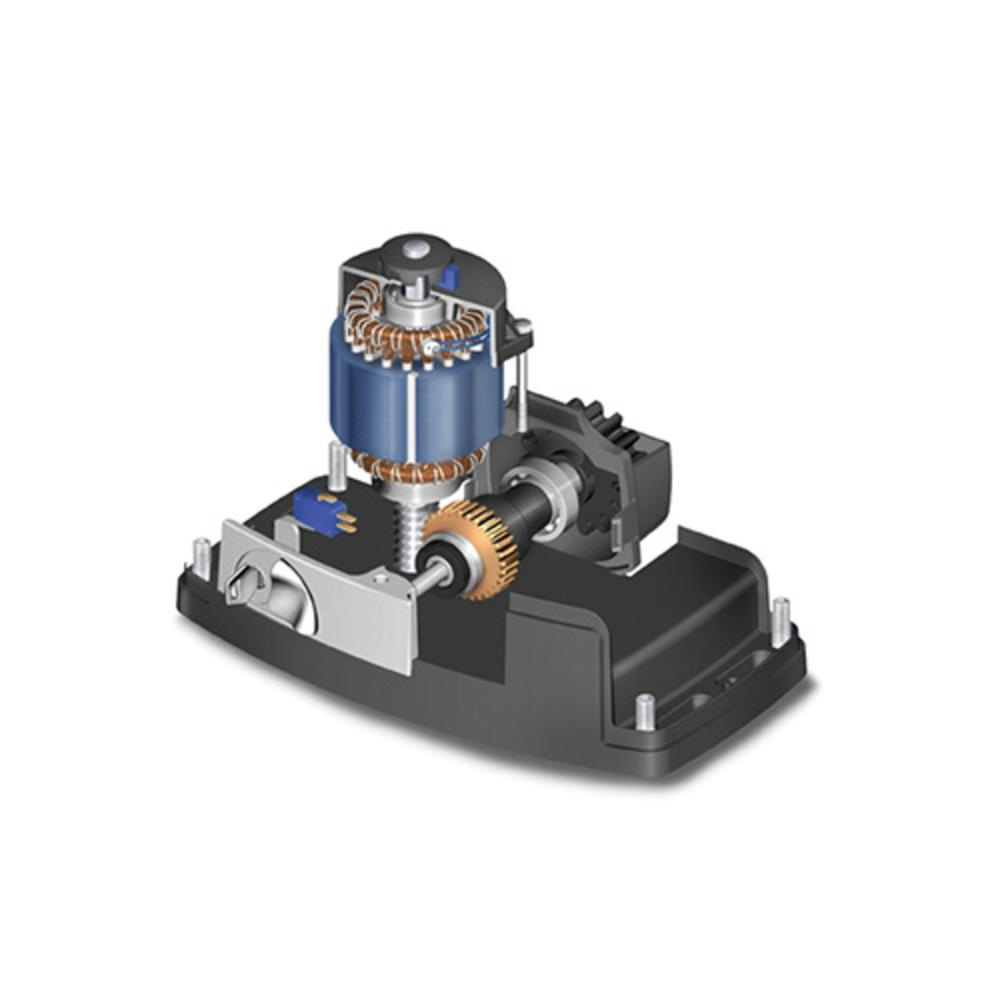 Деталі редуктора приводу виготовлені зі сплаву сталі і бронзи, що істотно зменшує тертя, нагрівання і знос. Енкріментний енкодер, спільно з фотоелементами безпеки, постійно контролює переміщення воріт. Несуча конструкція виготовлена з литого, під тиском, алюмінію. Вона має високу міцність і малу вагу. Електродвигун працює безшумно зі швидкістю 1400 об/хв, завдяки двом прецизійним підшипникам.