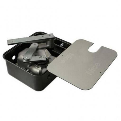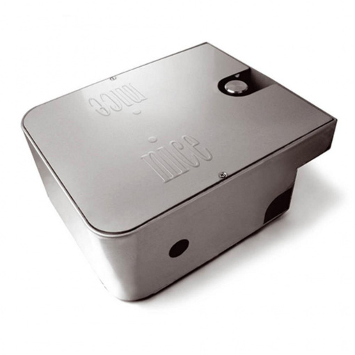 У складі приводу для розгорнутих воріт NICE йде важіль кріплення стулки і упор закритого положення. Корпус механізму має клас захисту IP67. Він герметичний і запобігає внутрішні деталі механізму від несприятливого впливу вологи. Електродвигун пристрою працює від напруги 230 В / 50Гц змінного струму. Двигун повністю складається з деталей, виготовлених з металевих сплавів.