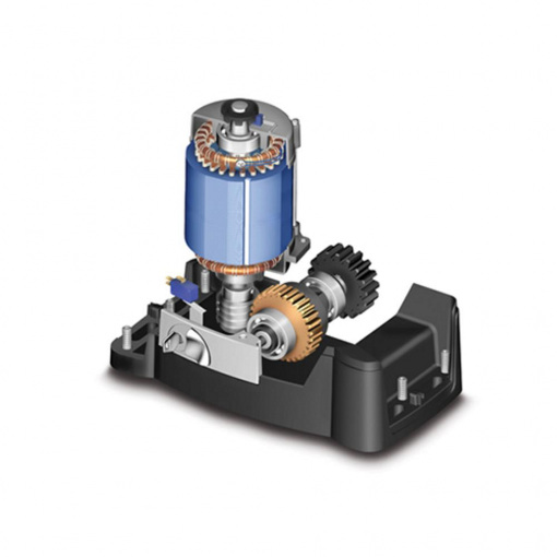 Інкрементний енкодер безперервно контролює переміщення стулки воріт, забезпечуючи їх припинення або зворотний хід, якщо в ході руху виявиться якась перешкода. Посадочні місця підшипників і інших деталей корпусу піддані ретельній обробці і отцентровані з великою точністю для забезпечення плавної і тихої роботи протягом усього терміну експлуатації. Подовжена форма пазів під анкерні болти дозволяє змінювати площу контакту провідної шестерні з зубчастої рейкою воріт.