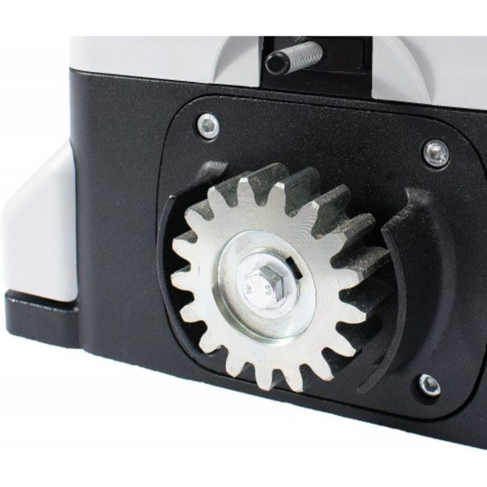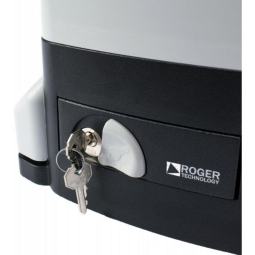 Електропривод ROGER R30/803 розроблений для автоматичного управління відкатними воротами з максимальною вагою полотна до 800 кг. Сфера його застосування універсальна - це приватні домоволодіння, автотранспортні підприємства, склади, прилеглі території промислових підприємств і виробничо-комерційних комплексів. Механічні кінцеві вимикачі надійно фіксують полотно в його кінцевих точках руху. Інтенсивність експлуатації - на середньому рівні, 50%. Напруга живлення - 220В/50Гц. Електродвигун, обертаючись зі швидкістю 1400 об/хв, здатний переміщати полотно зі швидкістю до 9.5 м/хв. Номінальна потужність - 350 Вт. Маса приводу - 13 кг.