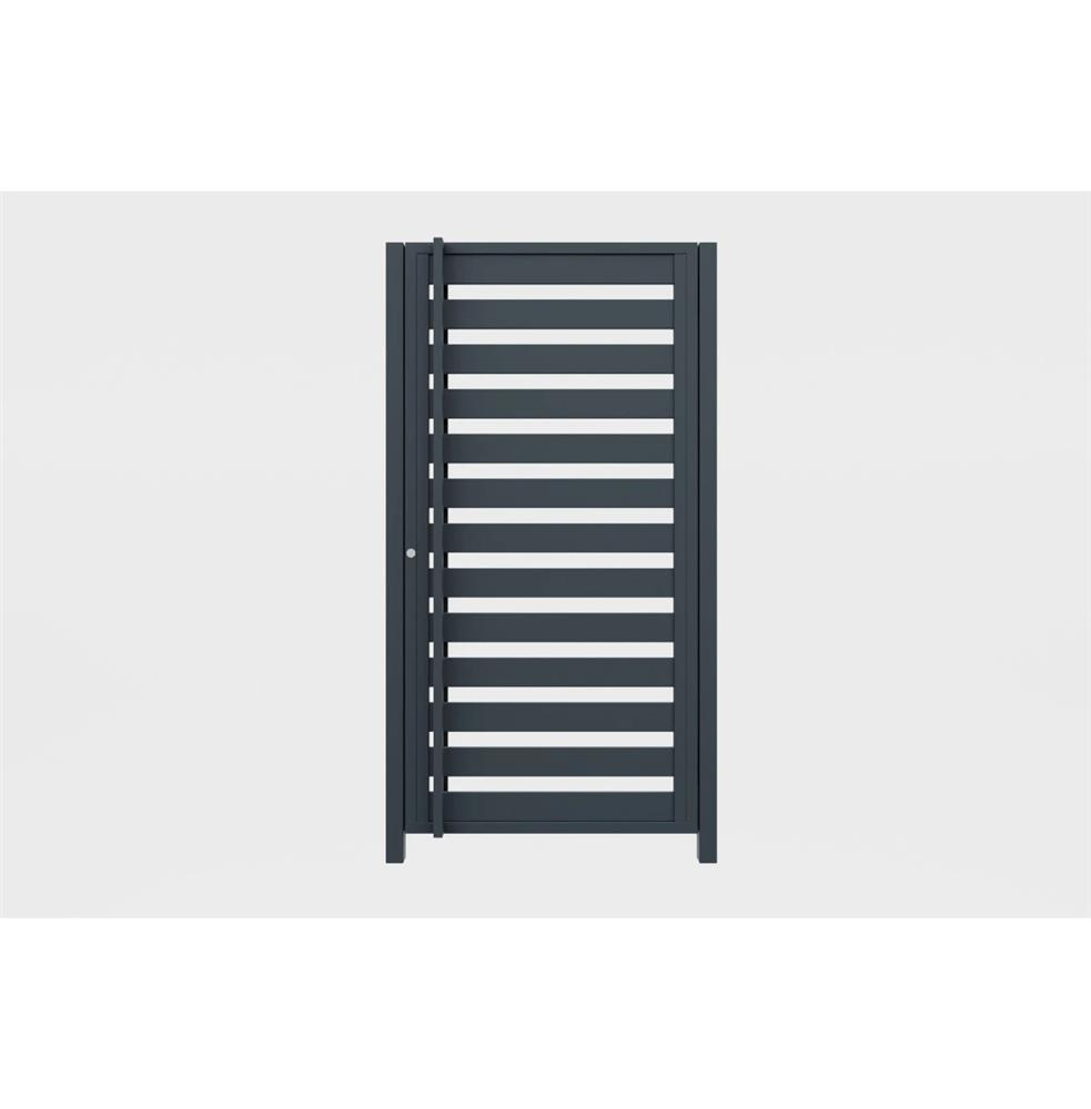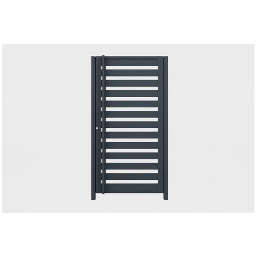Хвіртка має простий, але вишуканий дизайн, що гармонійно поєднується з будь-яким стилем забудови. Її рівномірні вертикальні планки створюють естетичний вигляд, що не тільки додає привабливості, а й забезпечує надійний захист.