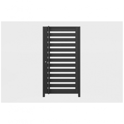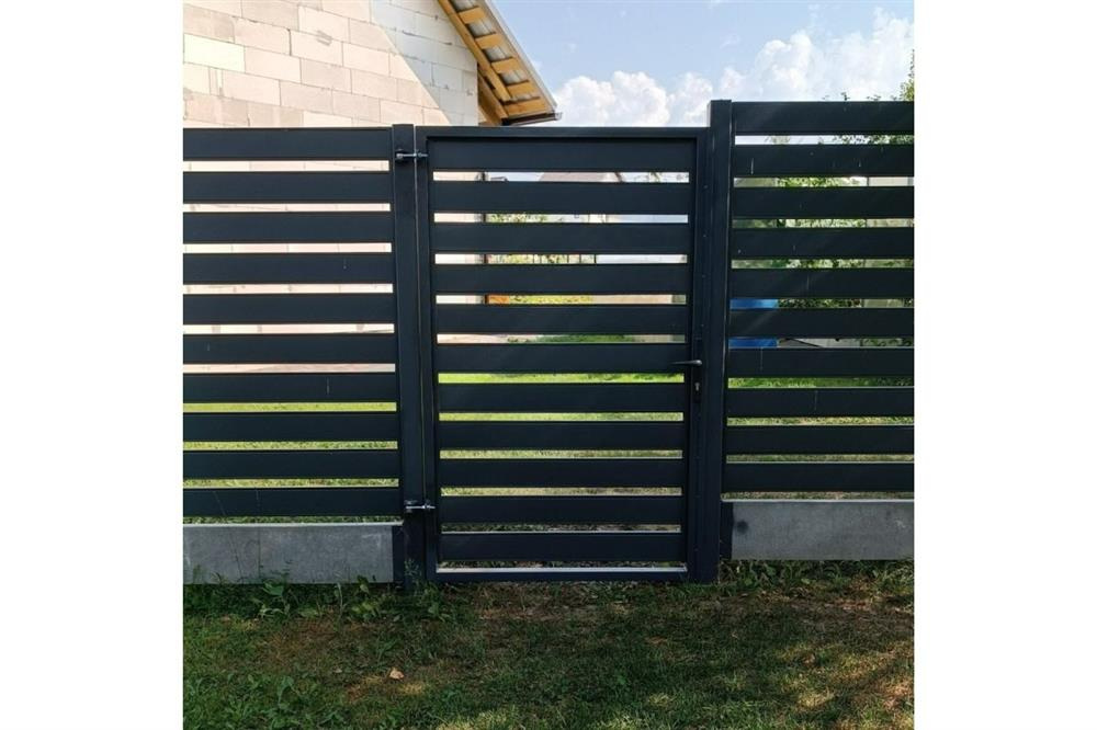Хвіртка має простий, але вишуканий дизайн, що гармонійно поєднується з будь-яким стилем забудови. Її рівномірні вертикальні планки створюють естетичний вигляд, що не тільки додає привабливості, а й забезпечує надійний захист.