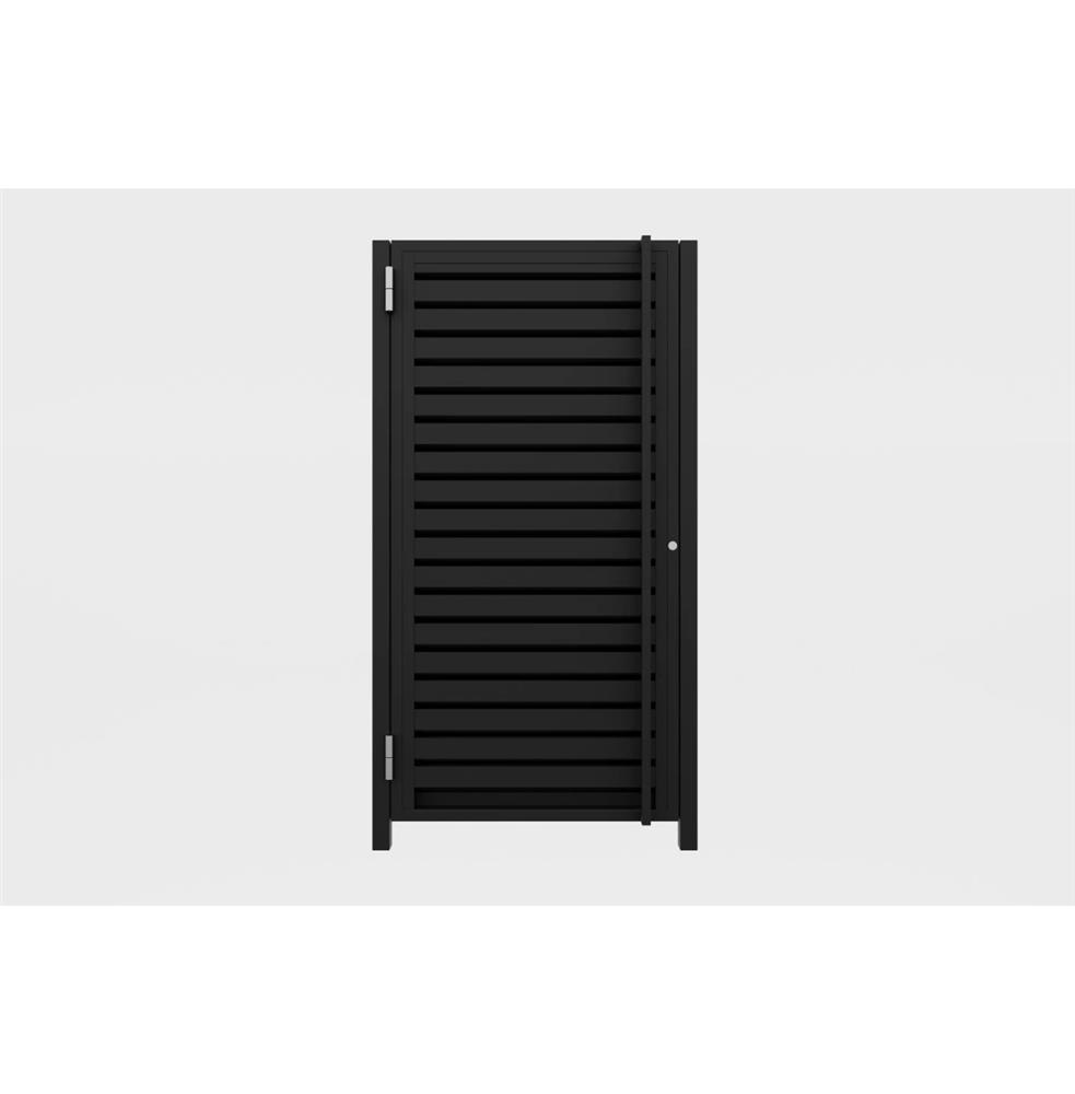 Завдяки горизонтальним ламелям у стилі жалюзі хвіртка виглядає стильно та гармонійно поєднується з будь-яким парканом і архітектурним стилем будинку.