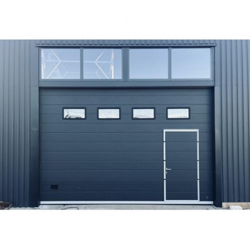 Промислові гаражні ворота Gant Plus Pro - панель Широка лінія, розмір 2600x2200 мм., колір Антрацит RAL 7016. Ручне управління.