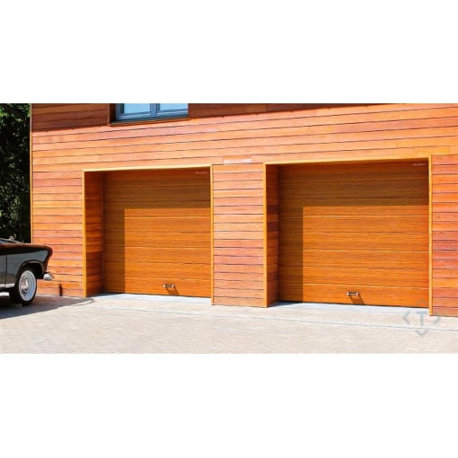 Промислові гаражні ворота Gant Plus Pro - панель Широка лінія, розмір 3500x2500 мм., колір Золотий дуб. Ручне управління.