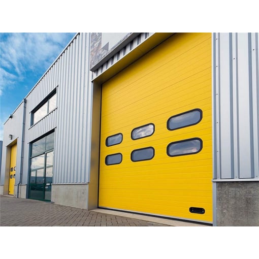Детальні характеристики Промислові гаражні ворота Gant Plus Pro - панель Широка лінія, розмір 4100x3200 мм., колір Жовтий - Aztec Yellow. Ручне управління..