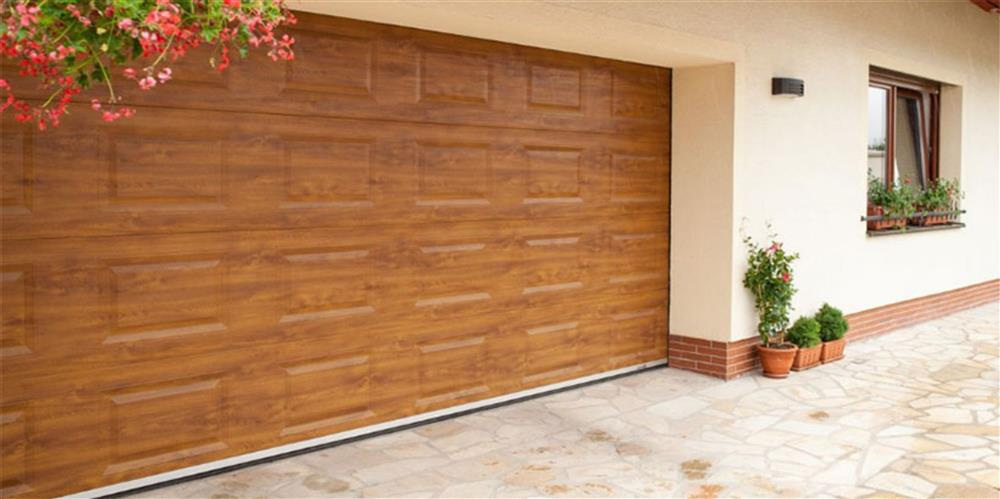 Секційні гаражні ворота Gant Plus - панель Фільонка, розмір 2500x2200 мм., колір Золотий дуб. Ручне управління.