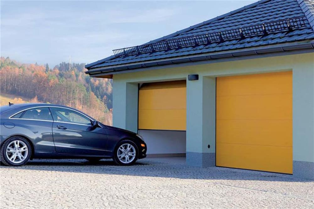 Детальні характеристики Секційні гаражні ворота Gant Plus - панель Широка лінія, розмір 2500x2500 мм., колір Жовтий - Aztec Yellow. Ручне управління..