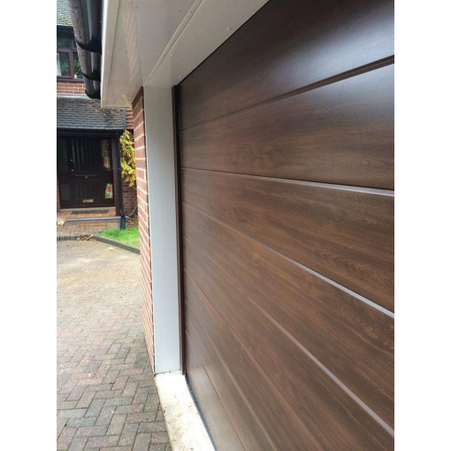 Детальні характеристики Секційні гаражні ворота Gant Plus - панель Широка лінія, розмір 2600x2200 мм., колір Темний дуб (горіх). Ручне управління..