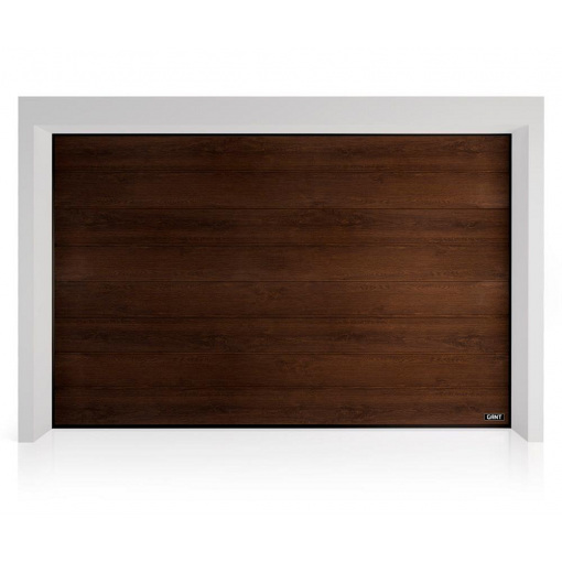 Детальні характеристики Секційні гаражні ворота Gant Plus - панель Широка лінія, розмір 2700x2300 мм., колір Венге. Ручне управління..