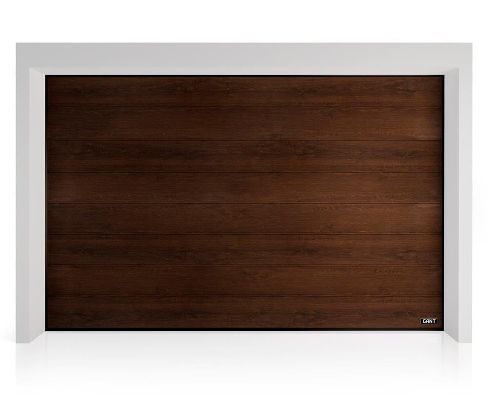 Детальні характеристики Секційні гаражні ворота Gant Plus - панель Широка лінія, розмір 2900x2500 мм., колір Венге. Ручне управління..