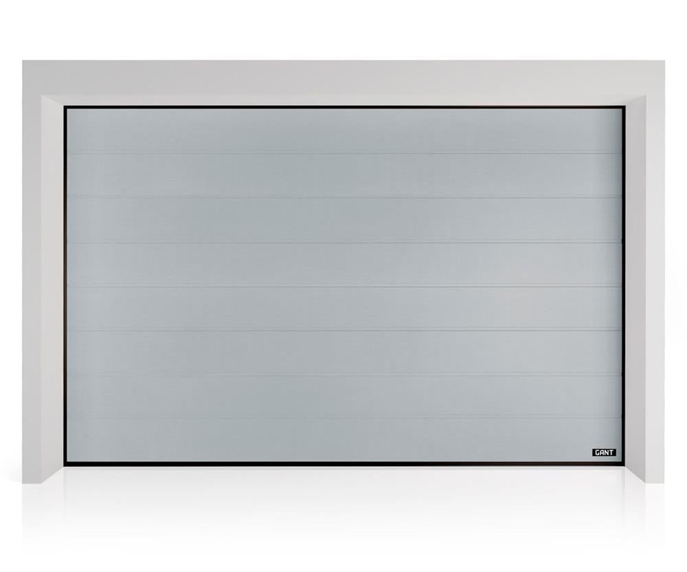 Детальні характеристики Секційні гаражні ворота Gant Plus - панель Широка лінія, розмір 3000x2500 мм., колір Срібло RAL 9006. Ручне управління..