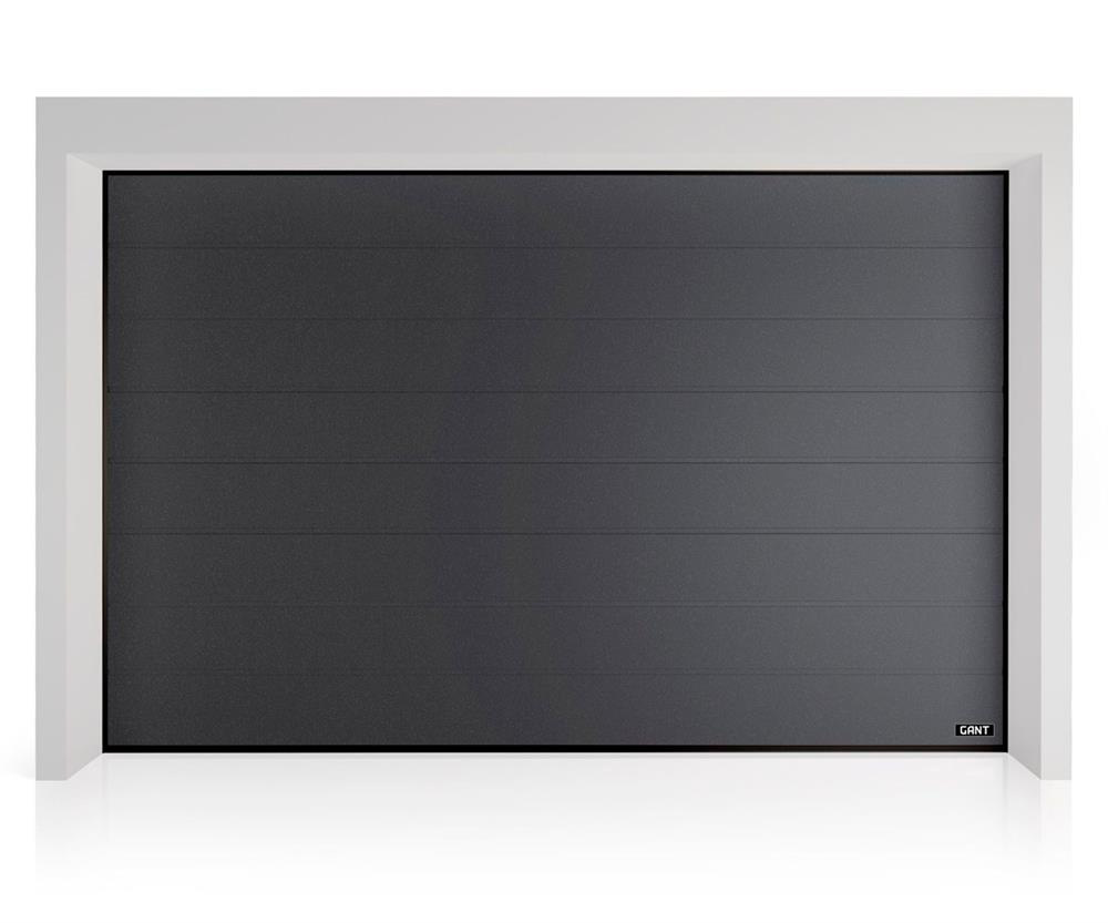 Детальні характеристики Секційні гаражні ворота Gant Plus - панель Широка лінія, розмір 3200x2600 мм., колір Антрацит RAL 7016. Ручне управління..