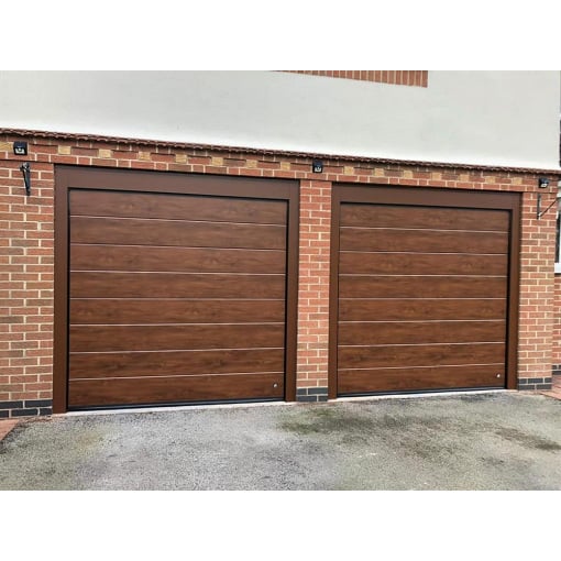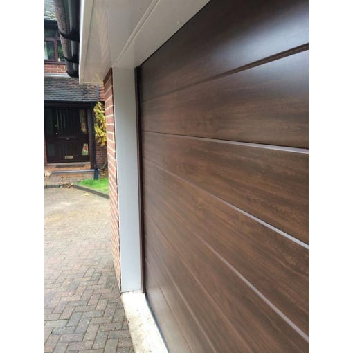 Детальні характеристики Секційні гаражні ворота Gant Plus - панель Широка лінія, розмір 3200x2600 мм., колір Темний дуб (горіх). Ручне управління..