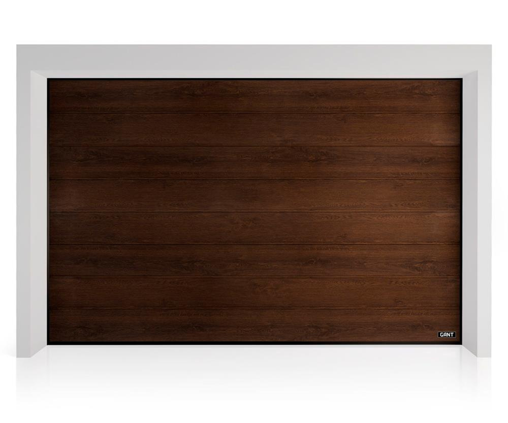 Детальні характеристики Секційні гаражні ворота Gant Plus - панель Широка лінія, розмір 3200x2600 мм., колір Венге. Ручне управління..