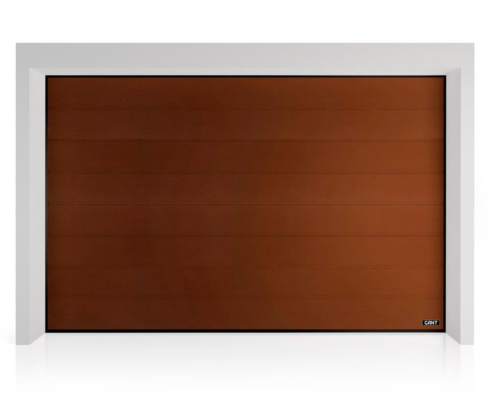Детальні характеристики Секційні гаражні ворота Gant Plus - панель Широка лінія, розмір 3500x2500 мм., колір Коричневий RAL 8014. Ручне управління..