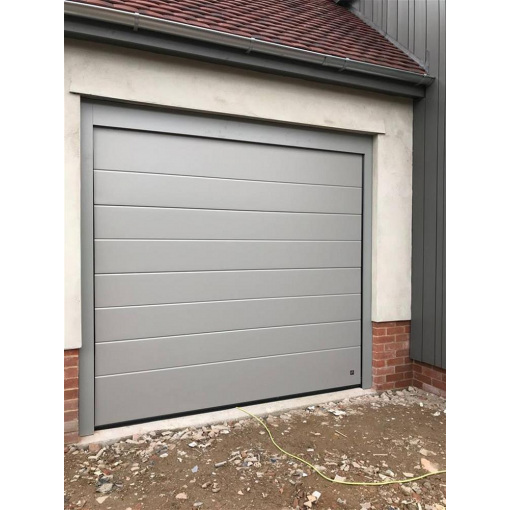 Детальні характеристики Секційні гаражні ворота Gant Plus - панель Широка лінія, розмір 3600x2900 мм., колір Срібло RAL 9006. Ручне управління..