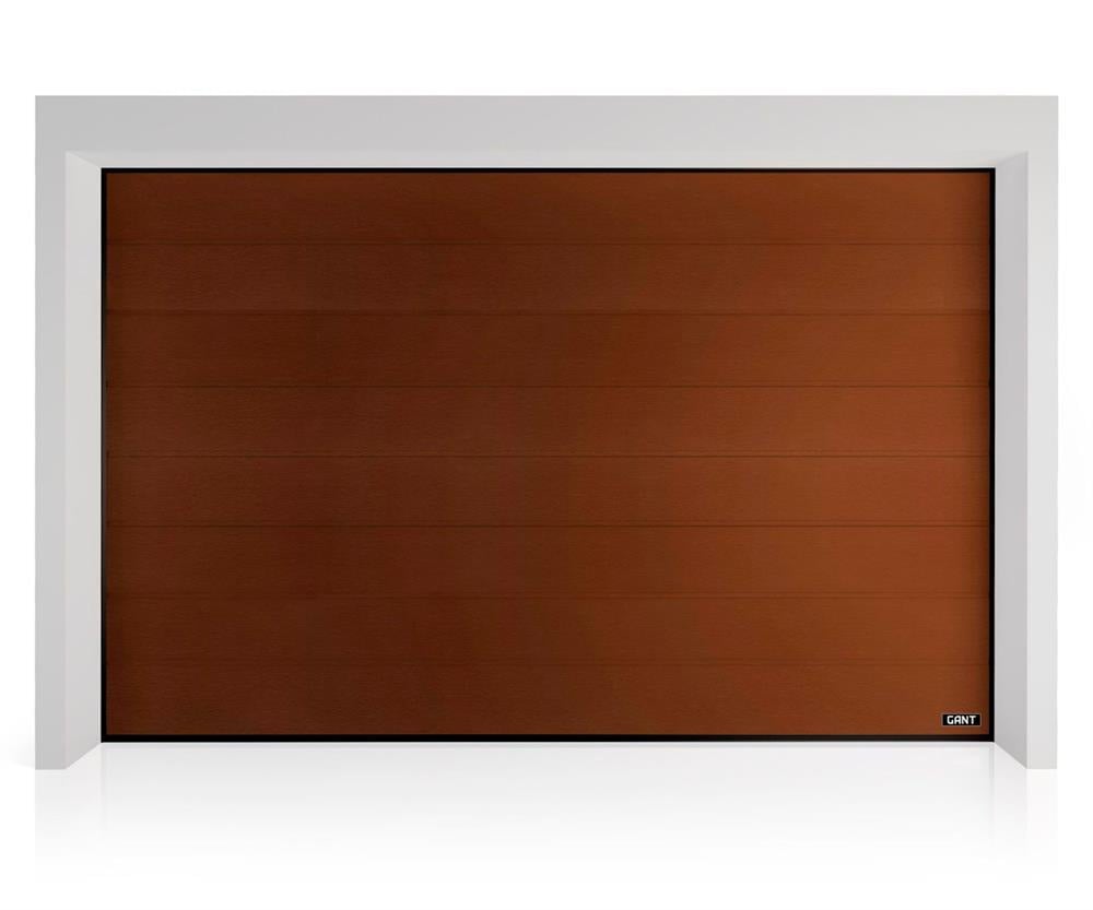 Детальні характеристики Секційні гаражні ворота Gant Plus - панель Широка лінія, розмір 4200x3000 мм., колір Коричневий RAL 8014. Ручне управління..