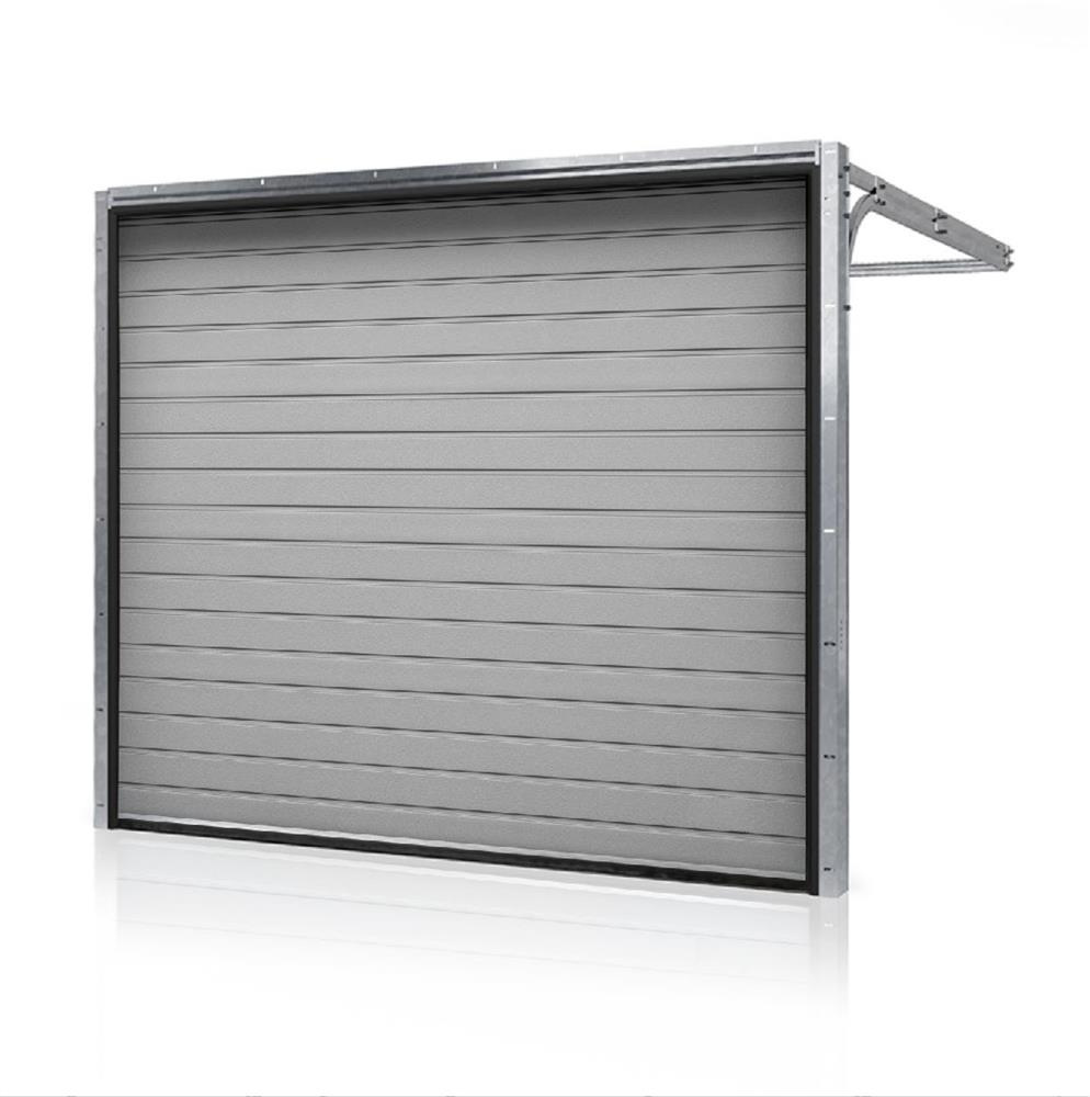 Детальні характеристики Секційні гаражні ворота Gant PR - панель Широка лінія, розмір 2400x2000 мм., колір Срібло RAL 9006. Ручне управління..