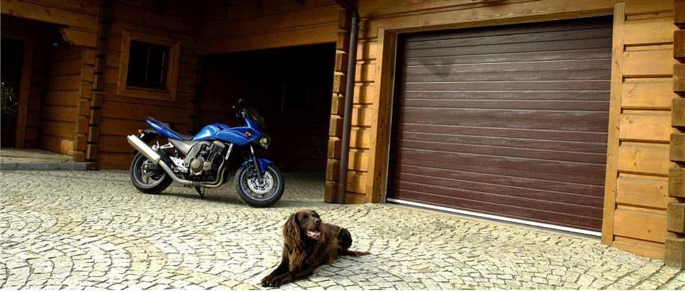 Детальні характеристики Секційні гаражні ворота Gant PR - панель Широка лінія, розмір 2400x2300 мм., колір Коричневий RAL 8014. Ручне управління..