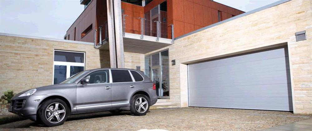 Детальні характеристики Секційні гаражні ворота Gant PR - панель Широка лінія, розмір 2400x2400 мм., колір Срібло RAL 9006. Ручне управління..