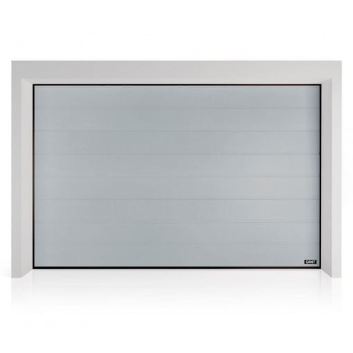 Детальні характеристики Секційні гаражні ворота Gant PR - панель Широка лінія, розмір 2800x2400 мм., колір Срібло RAL 9006. Ручне управління..