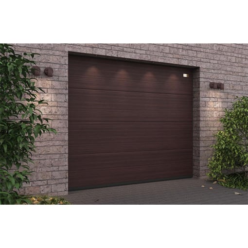 Детальні характеристики Секційні гаражні ворота Gant PR - панель Широка лінія, розмір 3000x2500 мм., колір Венге. Ручне управління..