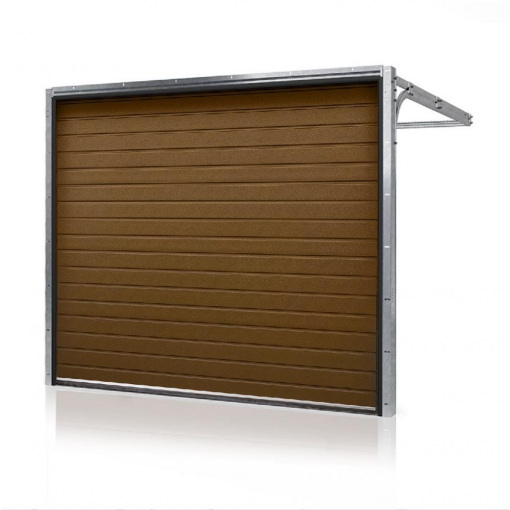Детальні характеристики Секційні гаражні ворота Gant PR - панель Широка лінія, розмір 3300x2600 мм., колір Коричневий RAL 8014. Ручне управління..