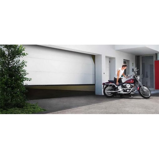 Детальні характеристики Секційні гаражні ворота Gant PR - панель Широка лінія, розмір 3500x2400 мм., колір Білий RAL 9010. Ручне управління..