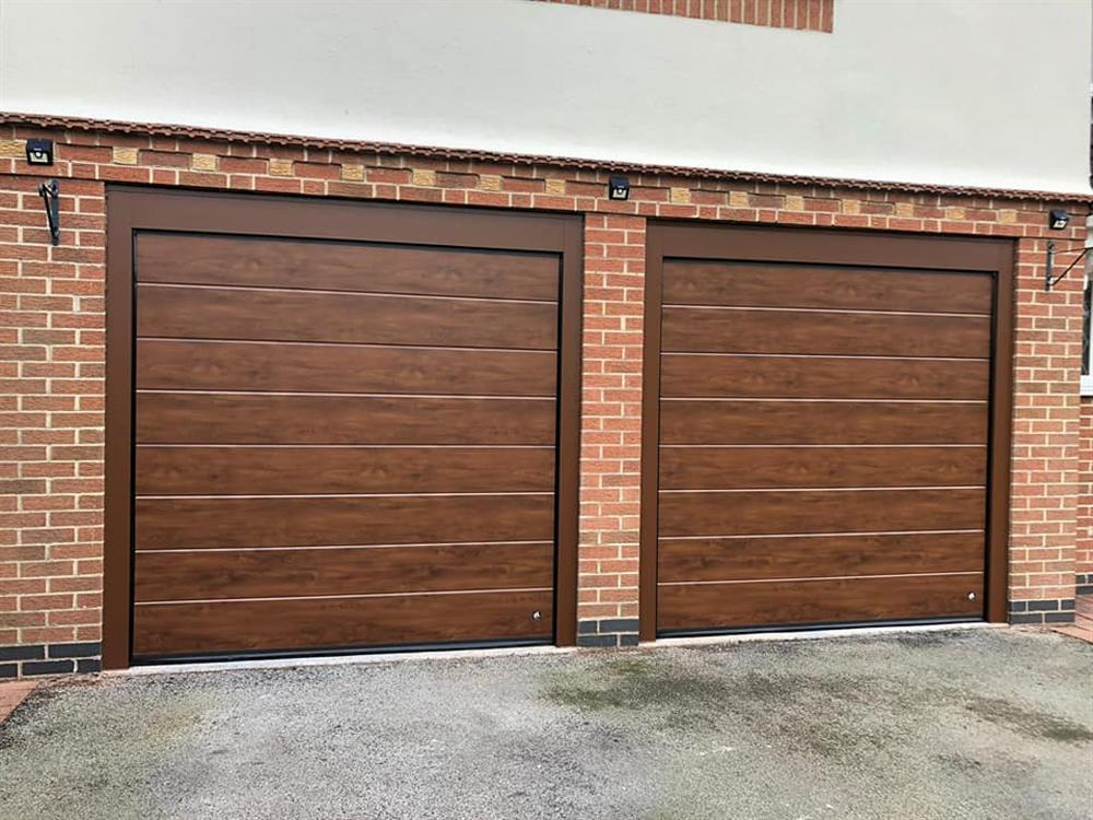 Детальні характеристики Секційні гаражні ворота Gant PR - панель Широка лінія, розмір 3500x2400 мм., колір Темний дуб (горіх). Ручне управління..
