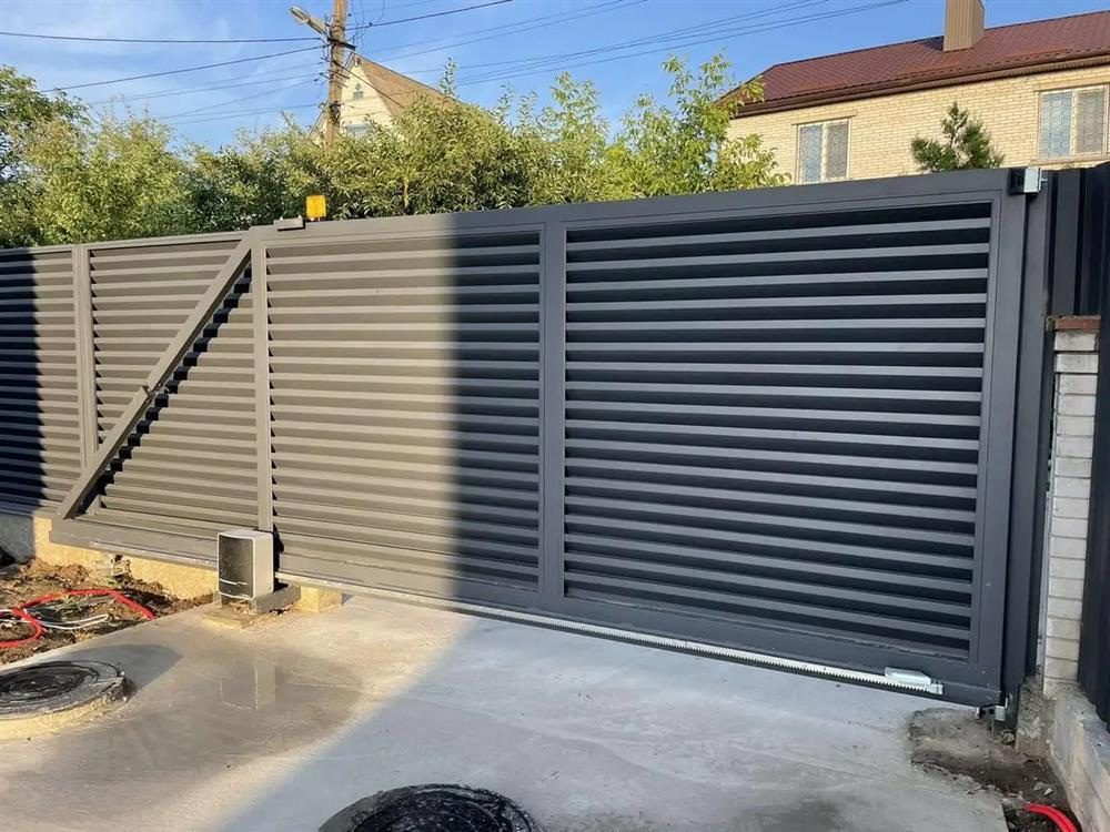 Ворота відкатні "Жалюзі Ромб" – це поєднання елегантності, технологічності та надійності, що робить їх чудовим вибором для сучасних приватних будинків, комерційних об’єктів та промислових зон.