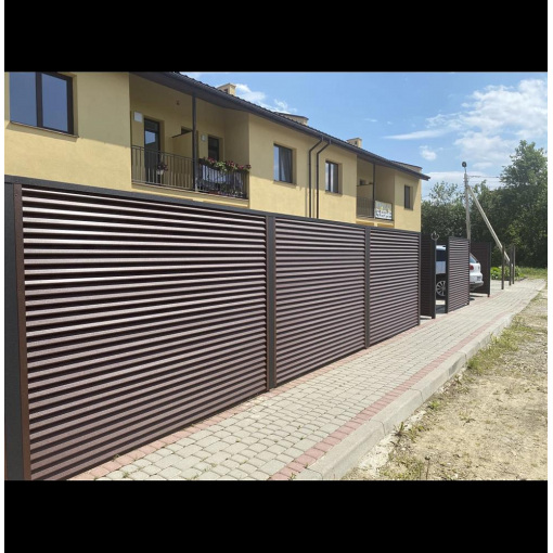Паркан ідеально доповнює екстер’єр будинків будь-якого архітектурного стилю, створюючи гармонійний і сучасний вигляд.