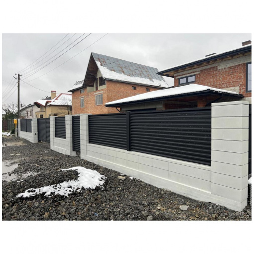 Секції мають товщину 60 мм, що робить їх жорсткими та надійними. Завдяки якісним матеріалам паркан не потребує додаткового обслуговування і зберігає чудовий вигляд упродовж багатьох років.