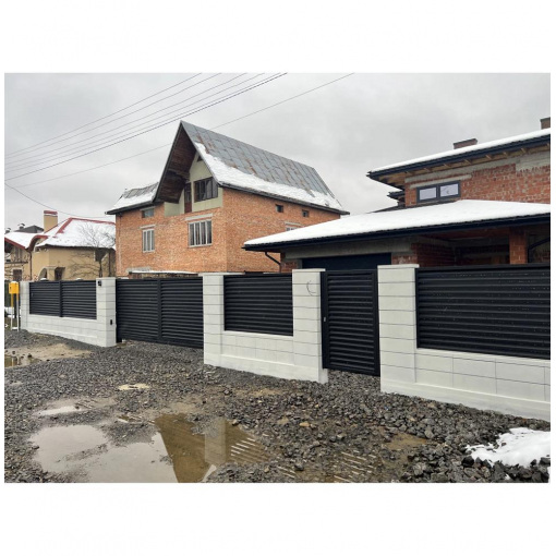 Секції мають товщину 60 мм, що робить їх жорсткими та надійними. Завдяки якісним матеріалам паркан не потребує додаткового обслуговування і зберігає чудовий вигляд упродовж багатьох років.